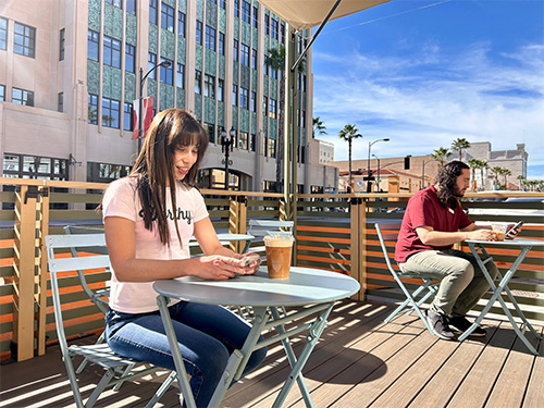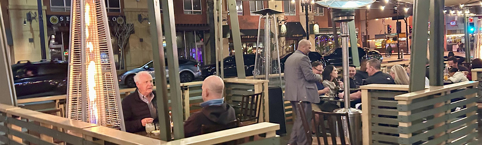 On-Street Dining Pavilions: These attractive dining pavilions provide a welcoming, inspiring setting for a more permanent outdoor dining presence on world-famous Colorado Boulevard. These pavilions enhance the dining experience while supporting local restaurants and fostering community interaction.